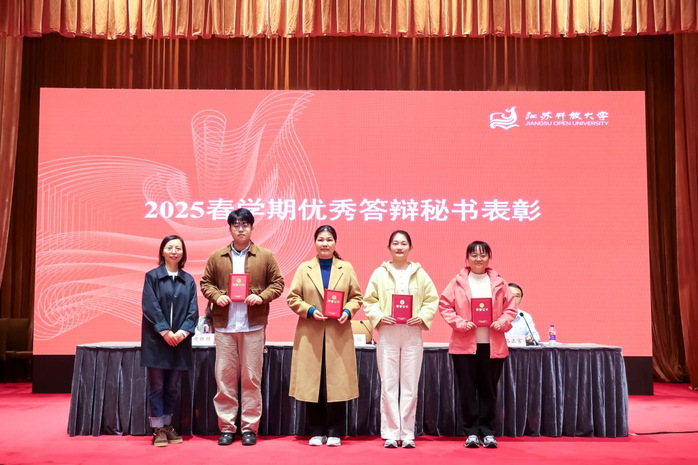 会议还对2025春学期优秀答辩秘书进行了表彰,公共管理学院副院长虞晓骏宣读《关于表彰公共管理学院 2025 年春学期优秀答辩秘书的决定》,经评审,44 名老师获优秀答辩秘书称号。学院领导分别为获奖教师颁奖。