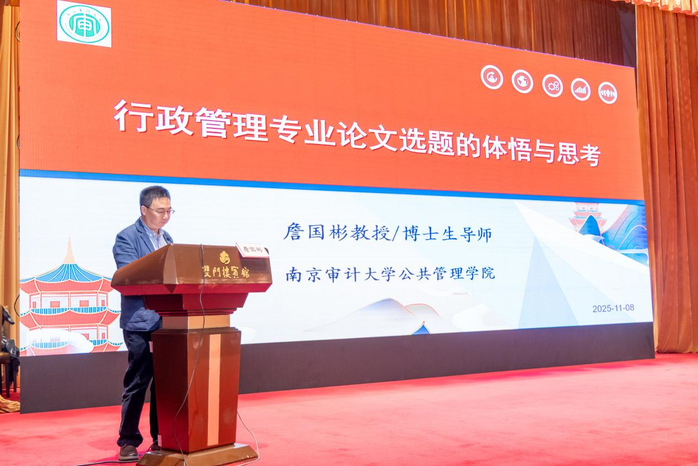 研讨会上,学院邀请南京审计大学詹国彬教授作题为《行政管理专业论文选题的体悟与思考》的专题讲座。他指出,选题是决定论文质量与吸引力的关键,要指导学生学会从政府文件、改革热点、社会现象及学界前沿中汲取灵感,注重“小切口、新视角”,强化问题意识与公共利益导向。行政管理专业论文选题应立足公共管理学科特点,紧跟国家治理现代化进程。詹教授从学科前沿、教学方法和科研融合等角度展开精彩阐述,为参会教师带来了深刻的理论启发与实践指导。