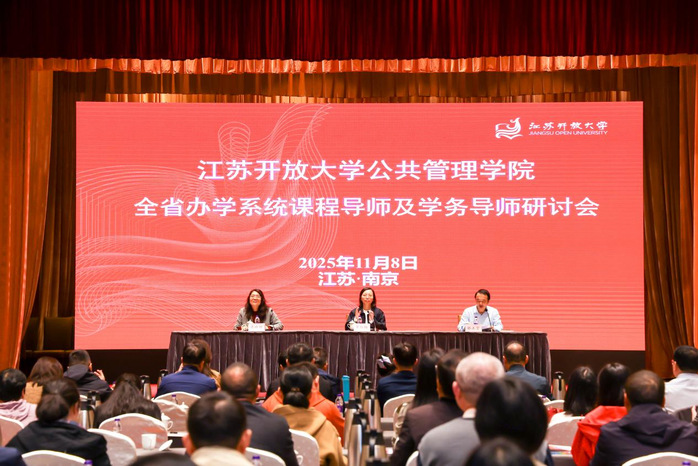 为进一步加强学院“双导师”团队建设,提升课程导师与学务导师的教学支持与服务能力,推动开放教育高质量发展,11月8日,公共管理学院在南京组织召开2025年全省办学系统课程导师及学务导师研讨会。来自全省各市、县开放大学的课程导师、学务导师、教学秘书等130余人参会。