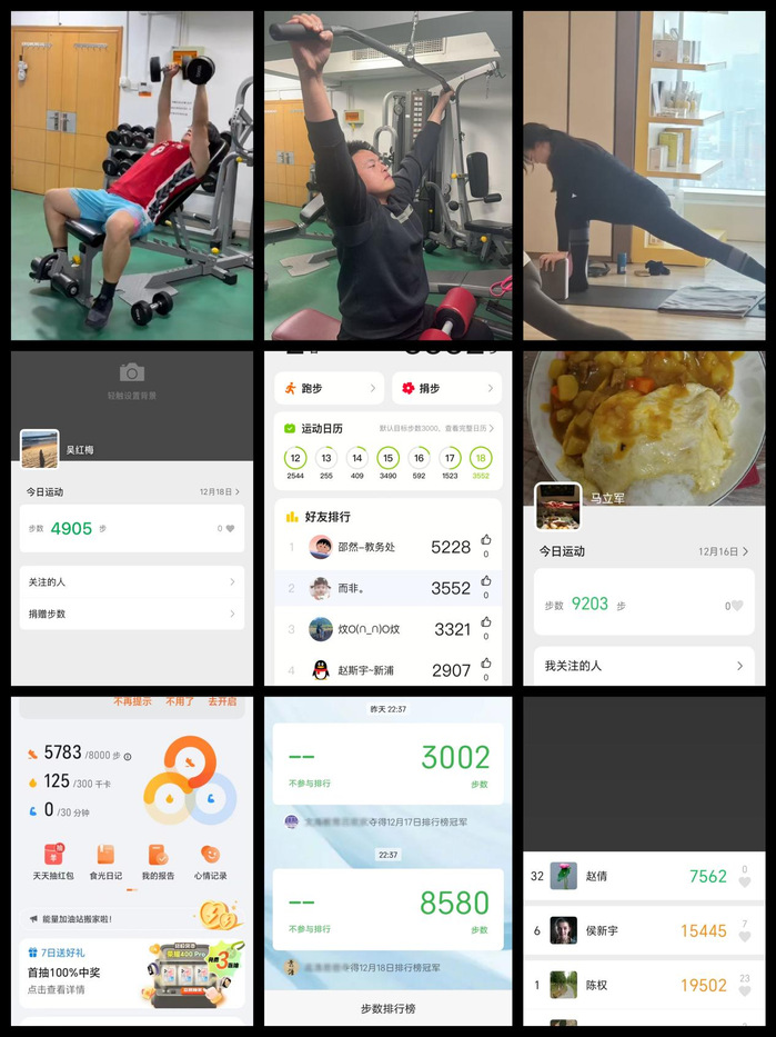 活动期间,老师们纷纷利用课余时间开展体育锻炼,并在12月19日前通过提交运动照片或运动步数截图的方式参与互动。据统计,多数教职工日步数超过3000步,不少老师更是坚持每日锻炼,展现了昂扬的精神风貌和良好的健康意识。